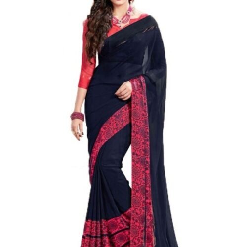 Generic Womens Georgette Digital Printed Saree (Navy Blue, 6.25 Mtr)