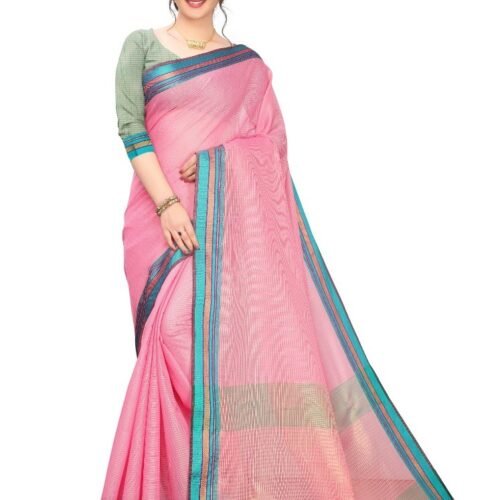 Generic Women’s Cotton Silk Saree With Blouse (Pink, 5-6 Mtrs)