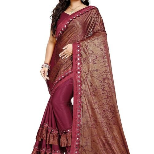 Generic Women’s Lycra Blend Sarees (Red , 5-6Mtrs)