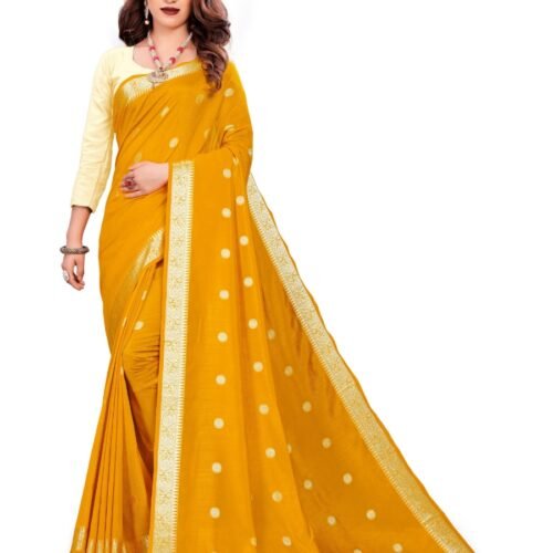 Generic Women’s Vichitra Silk Saree With Blouse (Mustard, 5-6 Mtrs)