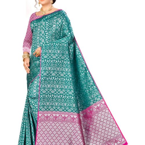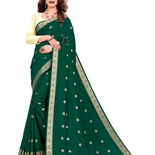 Generic Women’s Vichitra Silk Saree With Blouse (Green, 5-6 Mtrs)