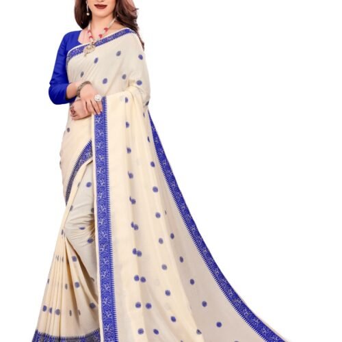 Generic Women’s Vichitra Silk Saree With Blouse (Cream, 5-6 Mtrs)