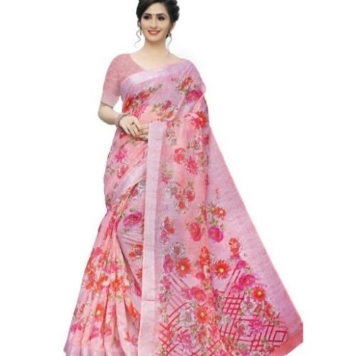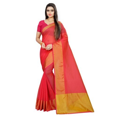 Generic Women’s Cotton Silk Saree With Blouse (Pink, 5-6 Mtrs)