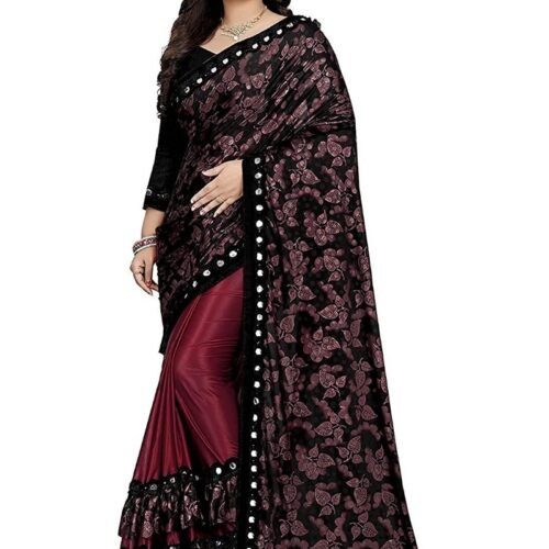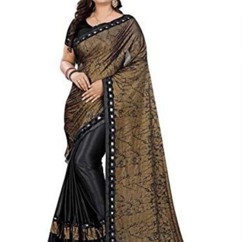 Generic Women’s Lycra Blend Sarees (Black And Brown , 5-6Mtrs)