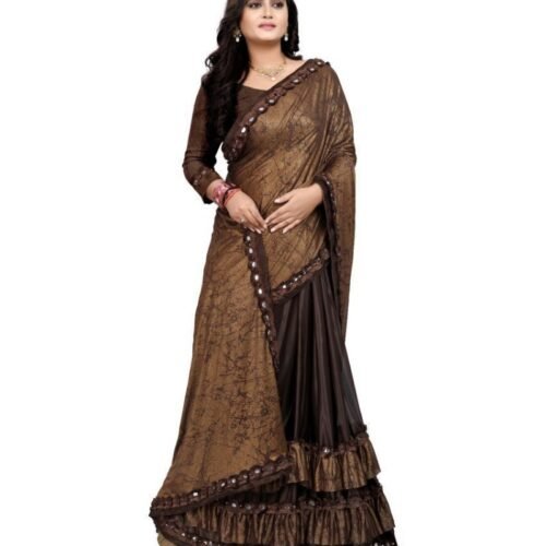 Generic Women’s Lycra Blend Sarees (Brown , 5-6Mtrs)