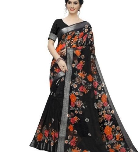Generic Women’s Cotton Silk Saree With Blouse (Black, 5-6 Mtrs)