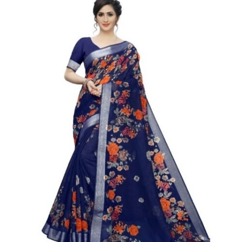 Generic Women’s Cotton Silk Saree With Blouse (Dark Blue, 5-6 Mtrs)