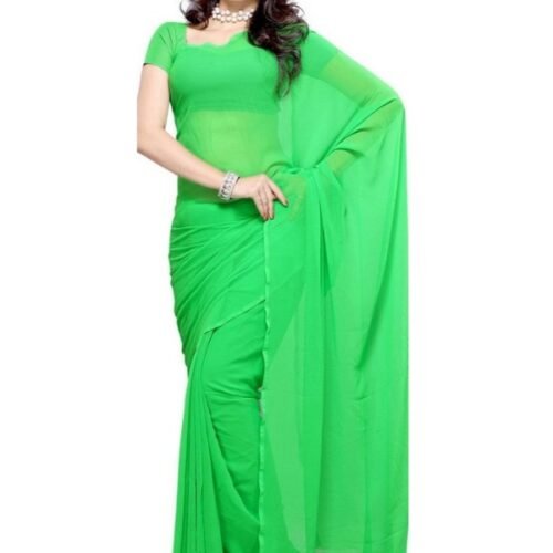 Generic Womens Georgette Plain Saree (Light Green, 6 mtr)
