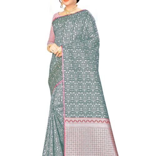 Generic Women’s Cotton Saree With Blouse (Rama, 5-6Mtrs)