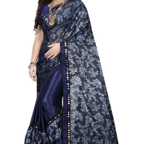 Generic Women’s Lycra Blend Sarees (Dark Blue , 5-6Mtrs)