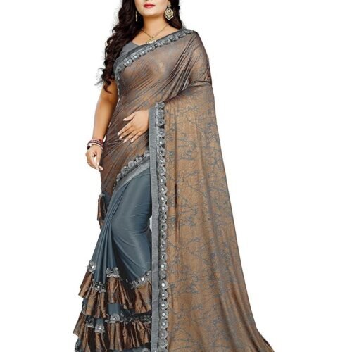 Generic Women’s Lycra Blend Sarees (Greay And Brown , 5-6Mtrs)