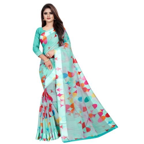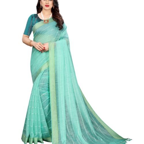 Generic Women’s Linen Cotton Blend Saree With Blouse(SkyBlue,5-6Mtrs)