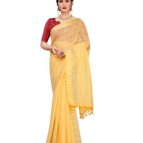 Generic Women’s Cotton Saree With Blouse (Yellow, 5-6Mtrs)