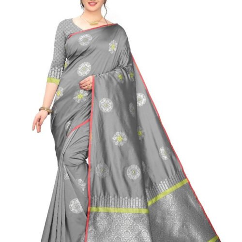 Generic Women’s Jacquard Saree (Greay ,5-6Mtrs)