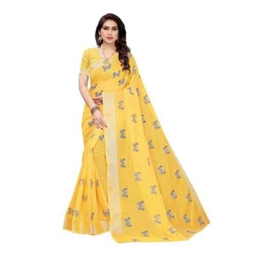 Generic Women’s Cotton Silk Saree With Blouse (Light Yellow, 5-6 Mtrs)