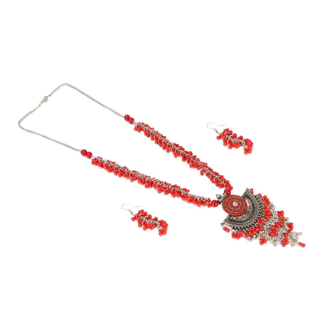 Designer Afgani German Silver Oxidized Necklace Set with Earrings