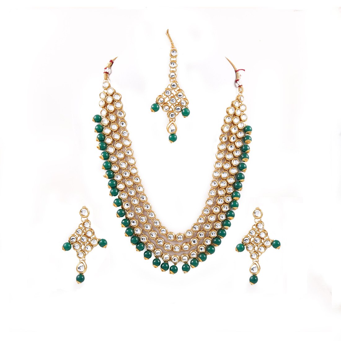Designer Green Multi Layer Kundan Necklace Set