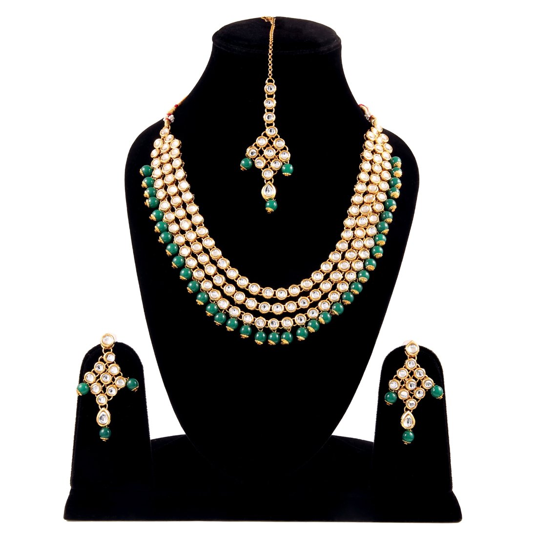 Designer Green Multi Layer Kundan Necklace Set,
