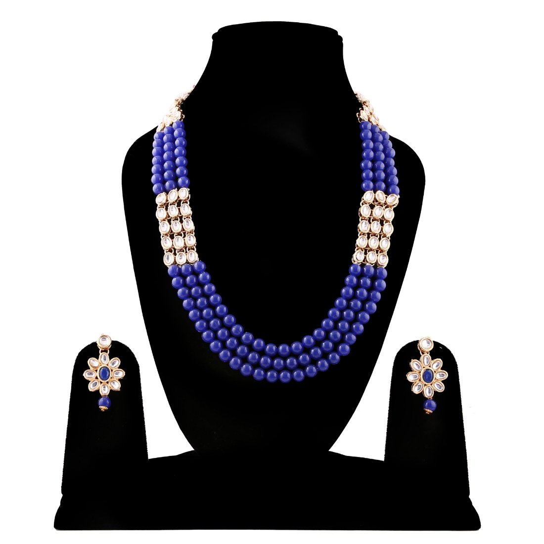 Elegant Finish Gold Plated Blue Kundan Necklace Set