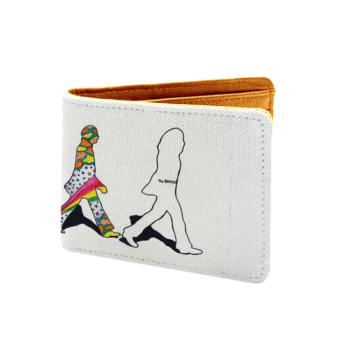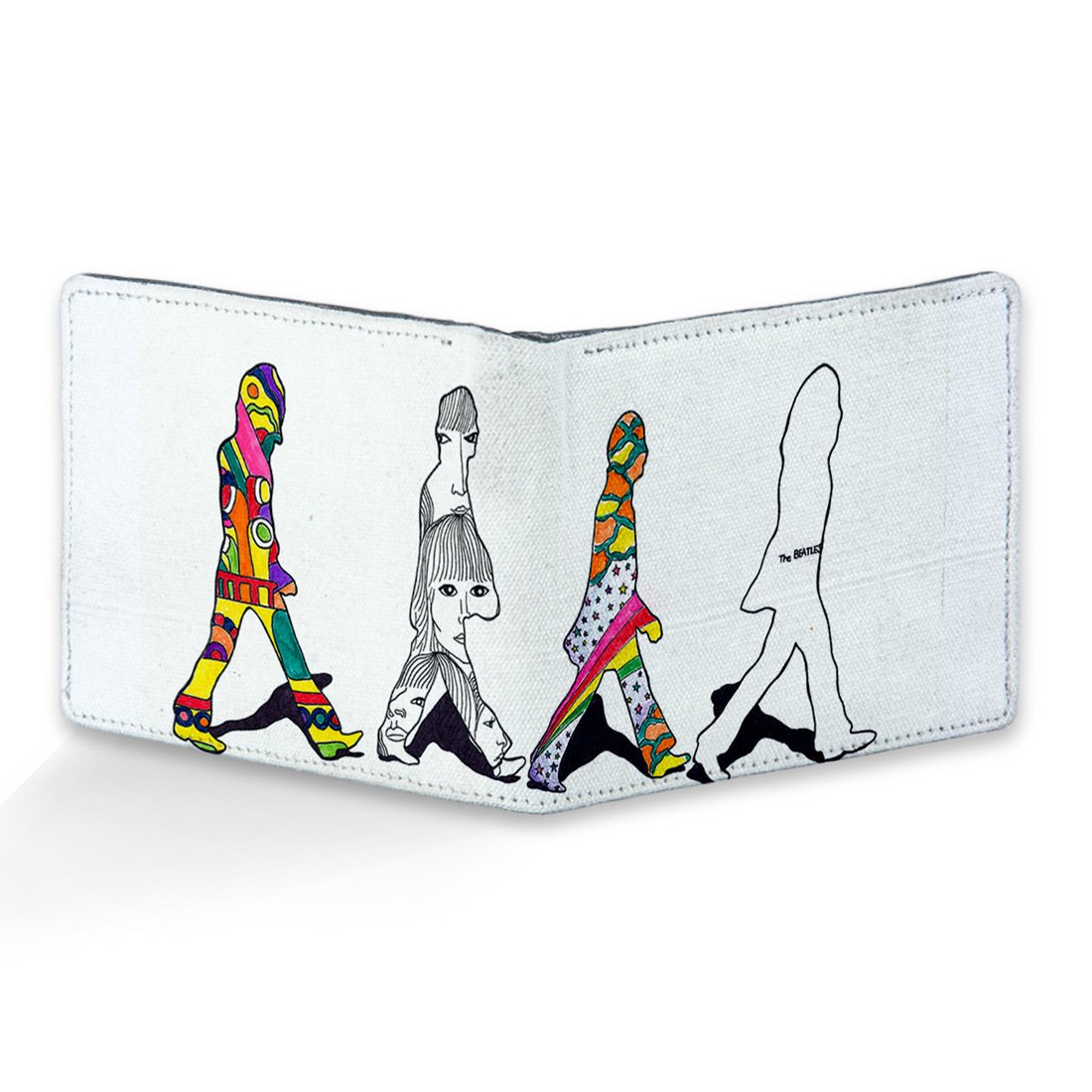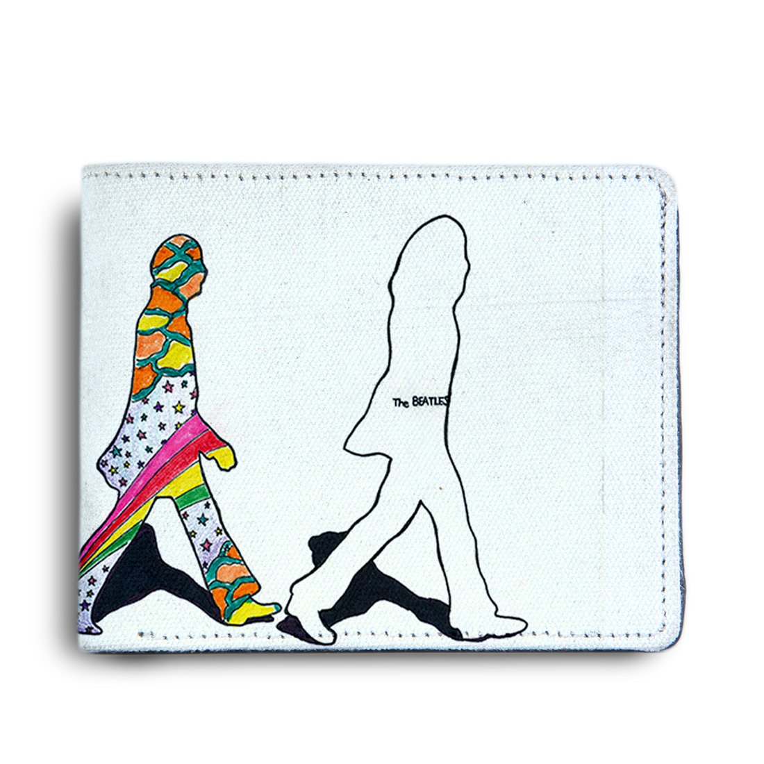 Fashion Man Walk Design White Canvas, Artificial Leather Wallet.