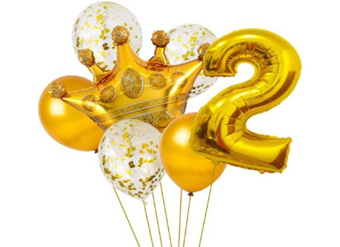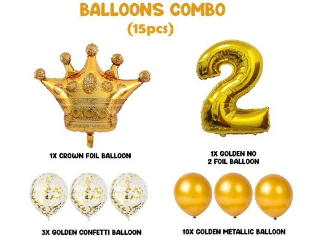 • Package Contains: 1Pc golden number 2 foil balloon, 1Pc Golden crown foil baloons, 10 Pcs gold metallic balloons and 3Pcs golden confetti balloons