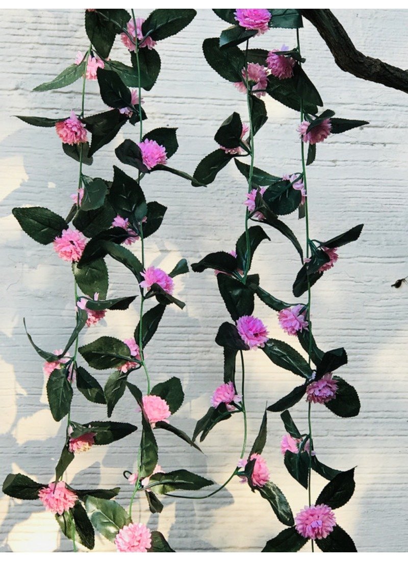 Artificial Light Pink Marigold Genda Flower Vine Creepe With Big Green Leaves For Home Decoration