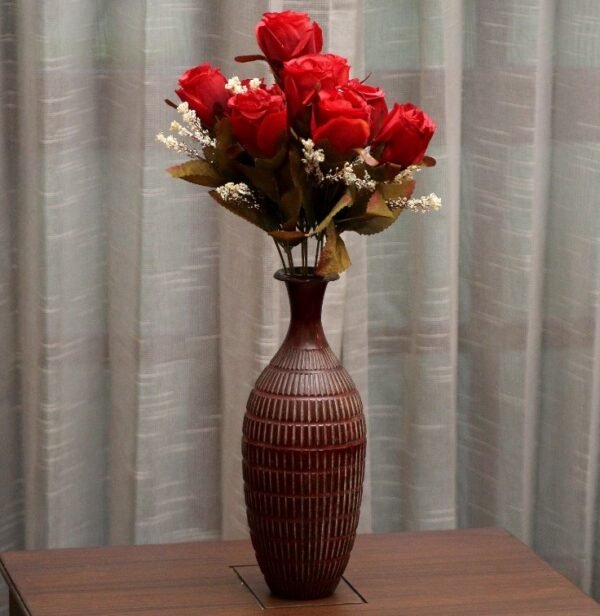 Generic Artificial Rose Flowers With Leaves Bouquet Of 10 Roses For Home Decoration (Color: Red, Material: Silk Polyester)