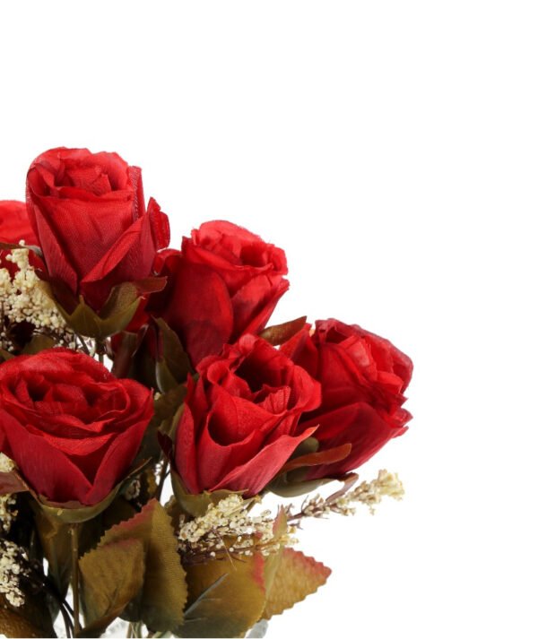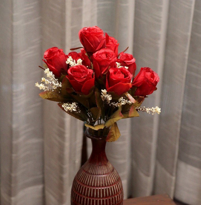 Artificial Rose Flowers With Leaves Bouquet Of 10 Roses For Home Decoration
