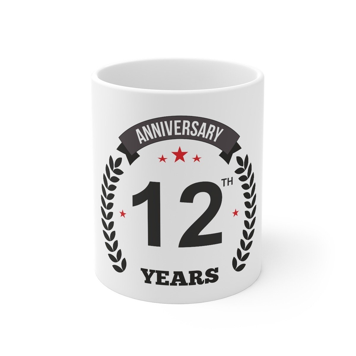 Generic Ceramic 12th Anniversary Printed Coffee Mug (Color: White, Capacity:330ml)