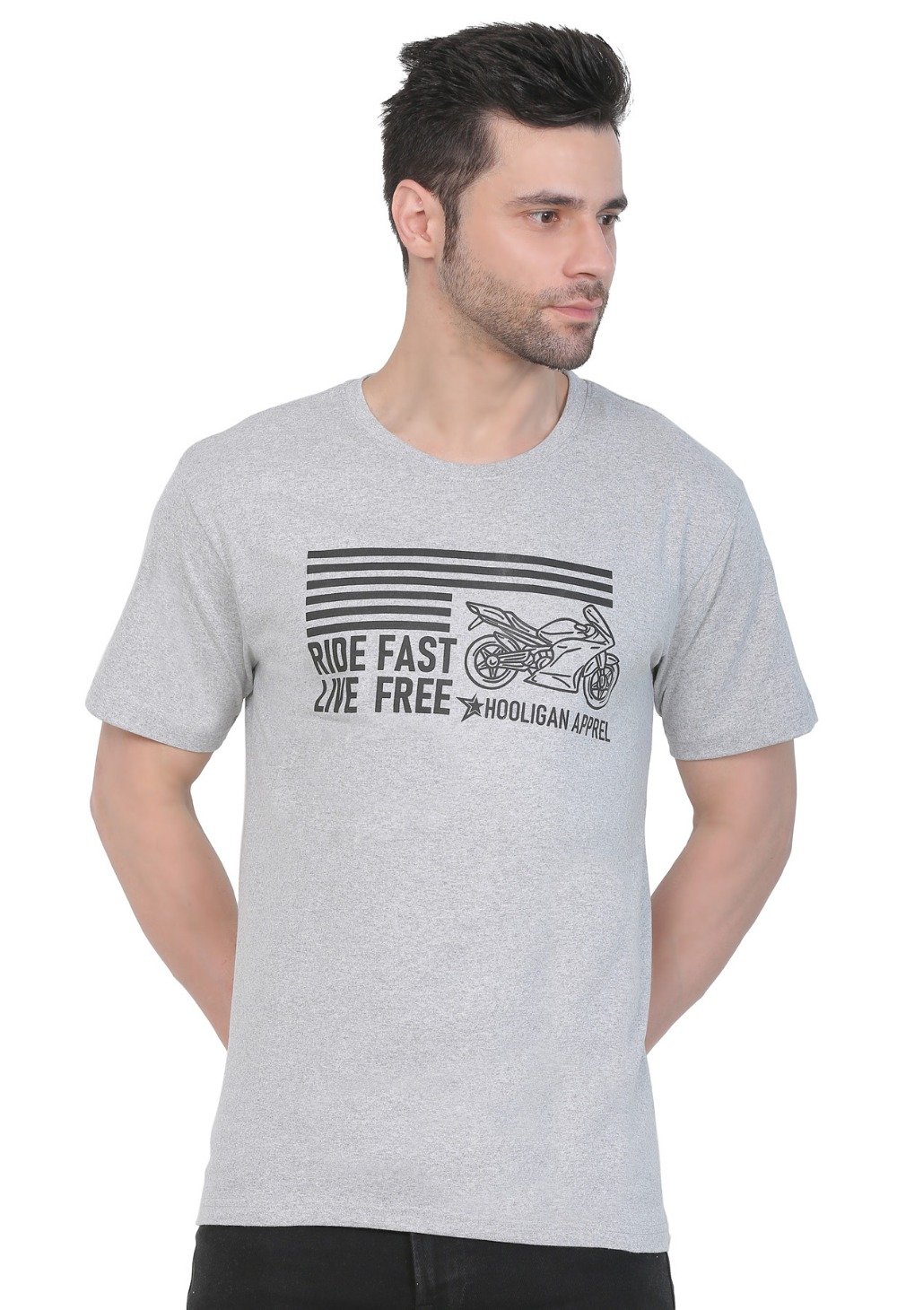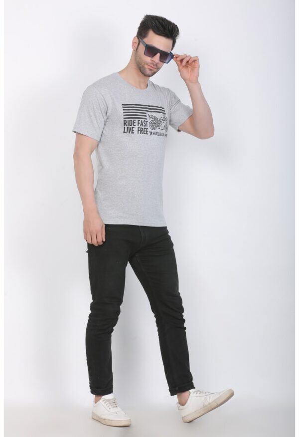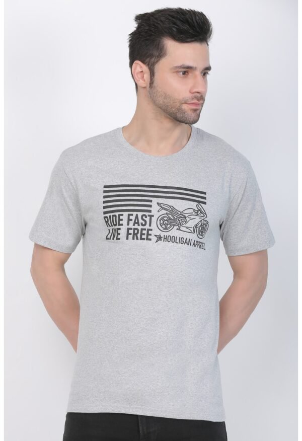 Generic Men’s Cotton Jersey Round Neck Printed Tshirt (Grey Melange)