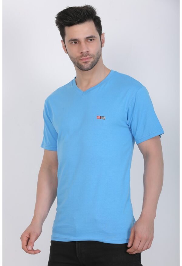 Generic Men’s Cotton Jersey V Neck Plain Tshirt (Turquoise Blue)