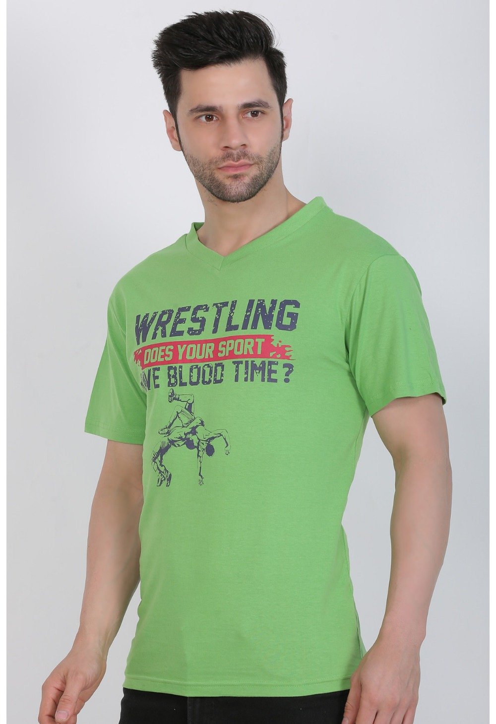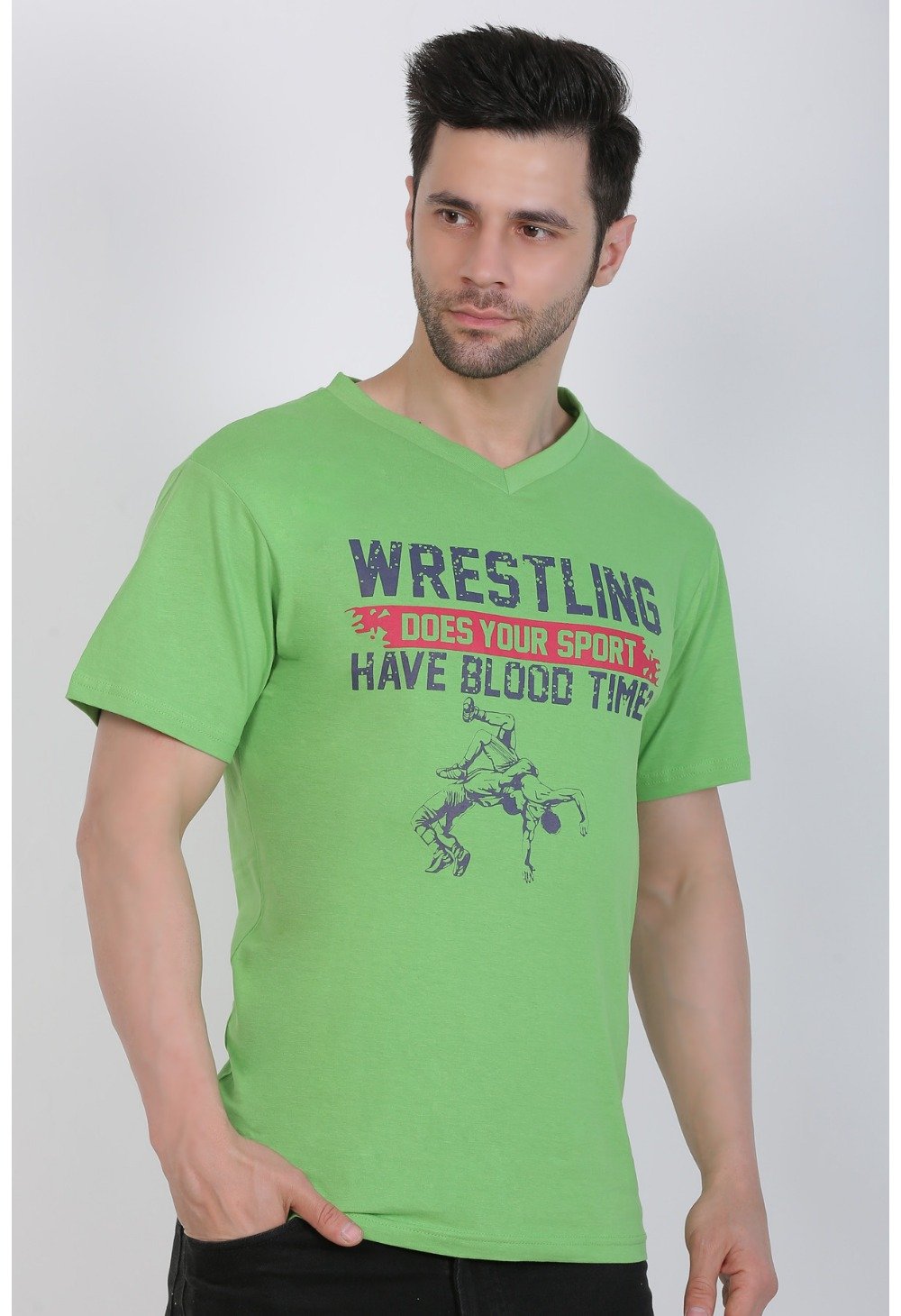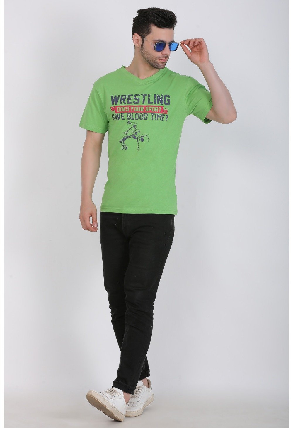 Generic Men’s Cotton Jersey V Neck Printed Tshirt (Pale Green)