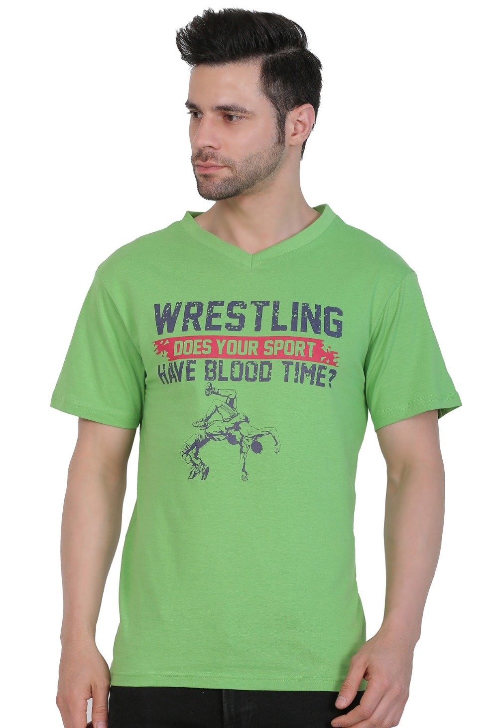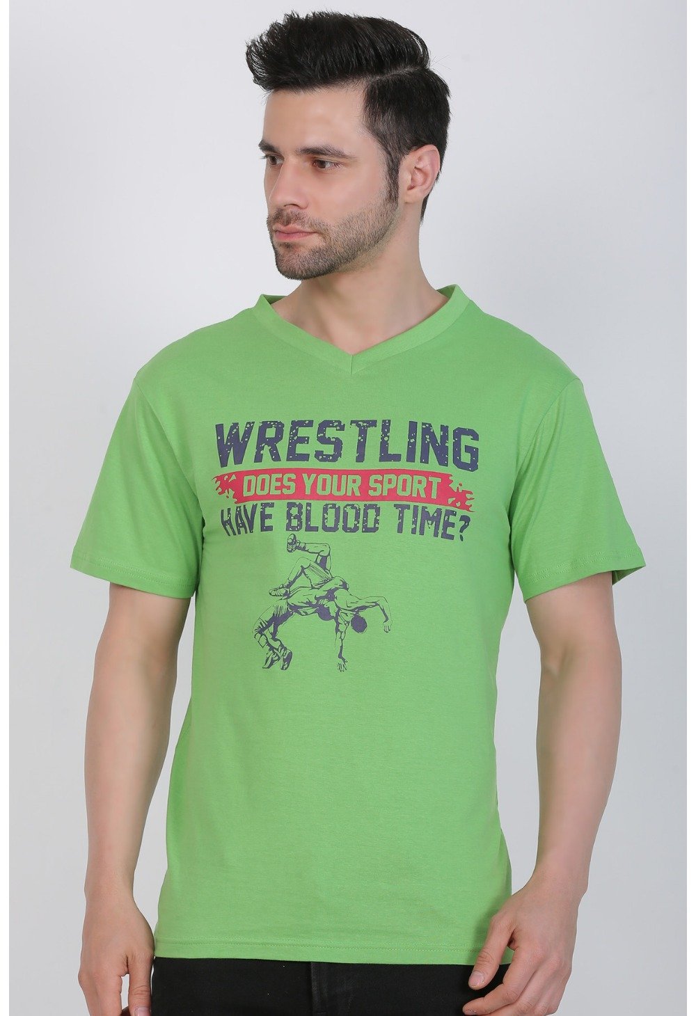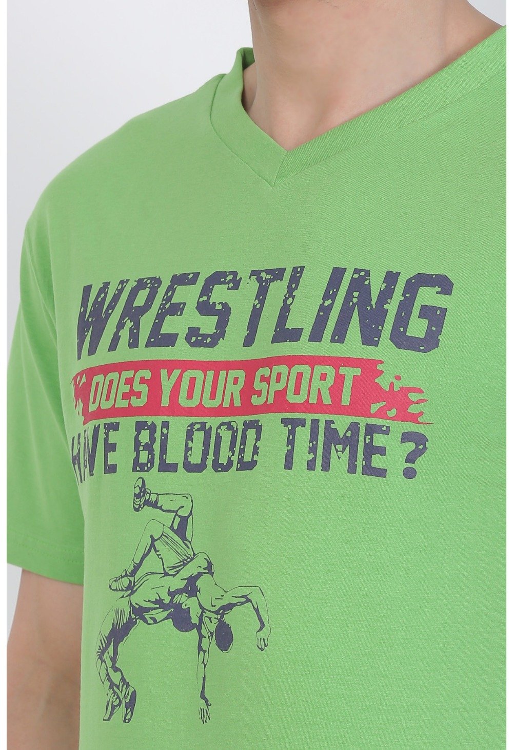 Generic Men’s Cotton Jersey V Neck Printed Tshirt (Pale Green)