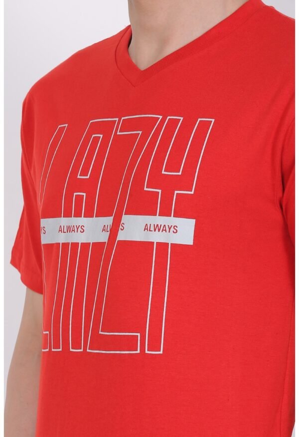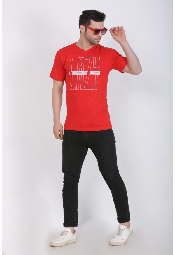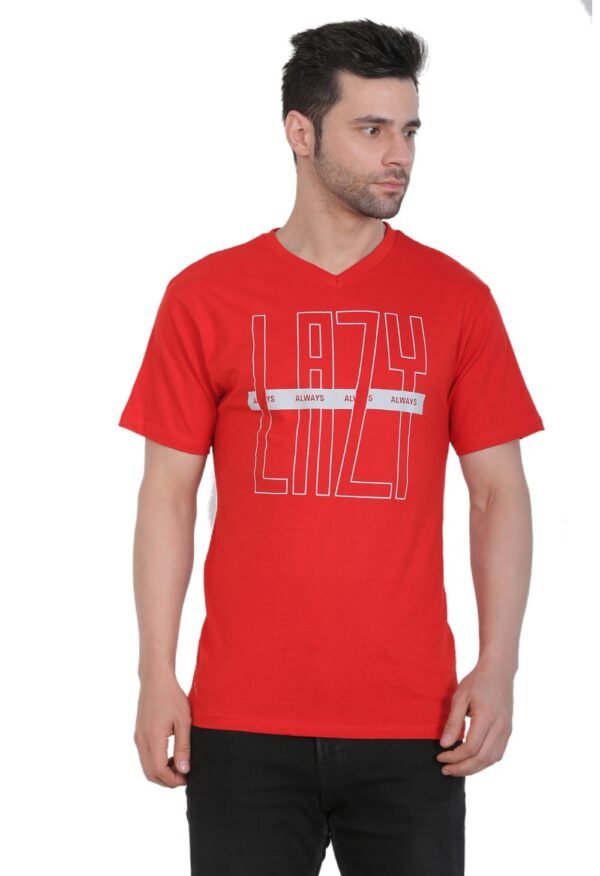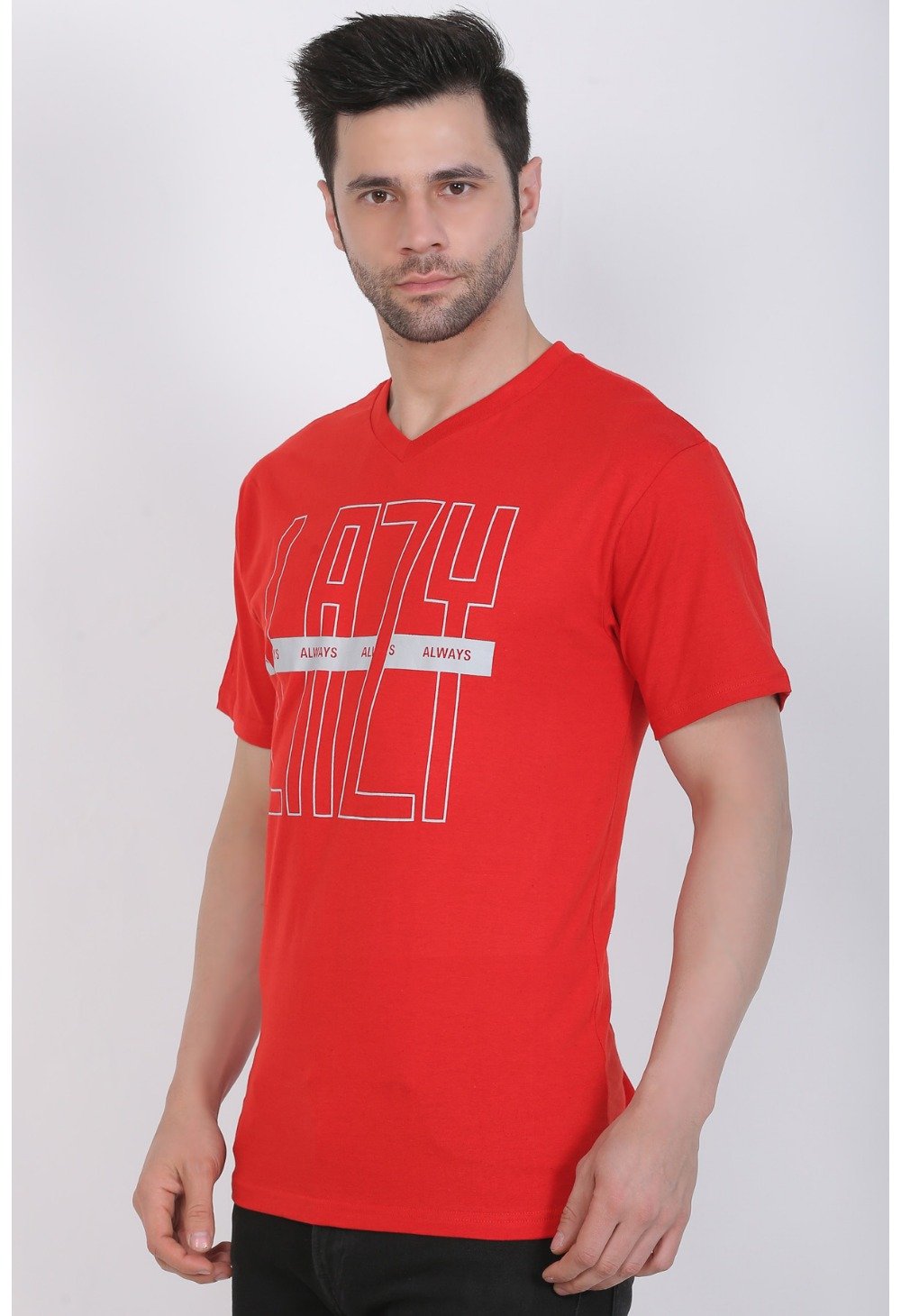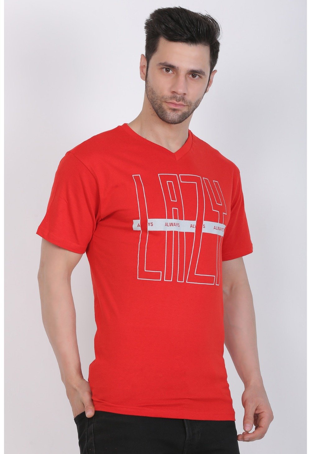 Generic Men’s Cotton Jersey V Neck Printed Tshirt (Red)