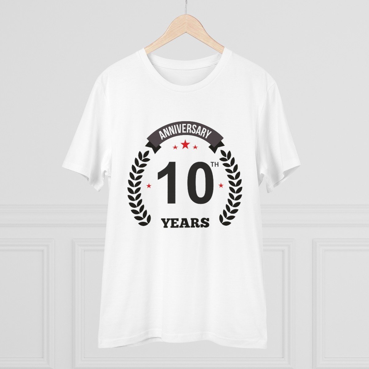 Generic Men’s PC Cotton 10th Anniversary Printed T Shirt (Color: White, Thread Count: 180GSM)