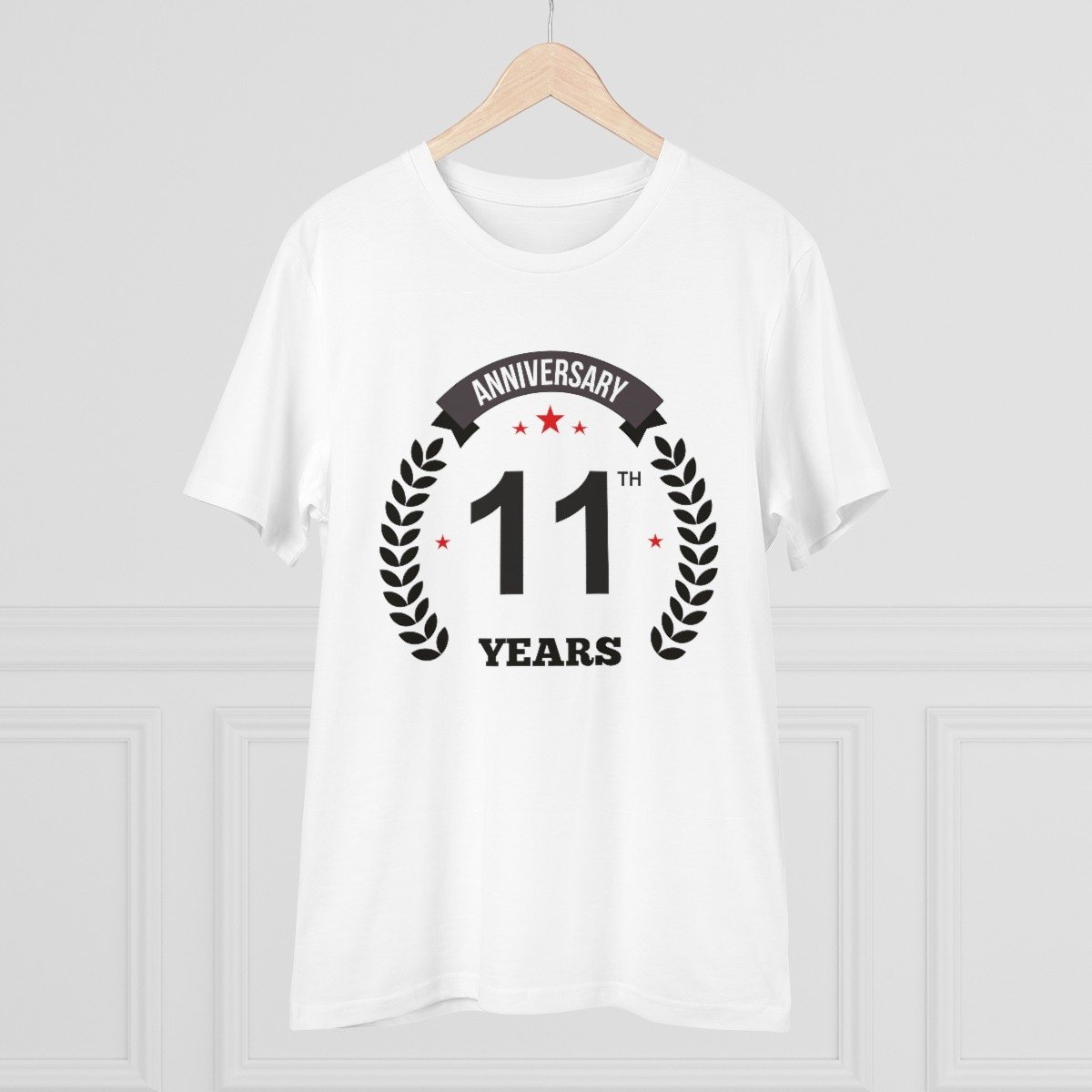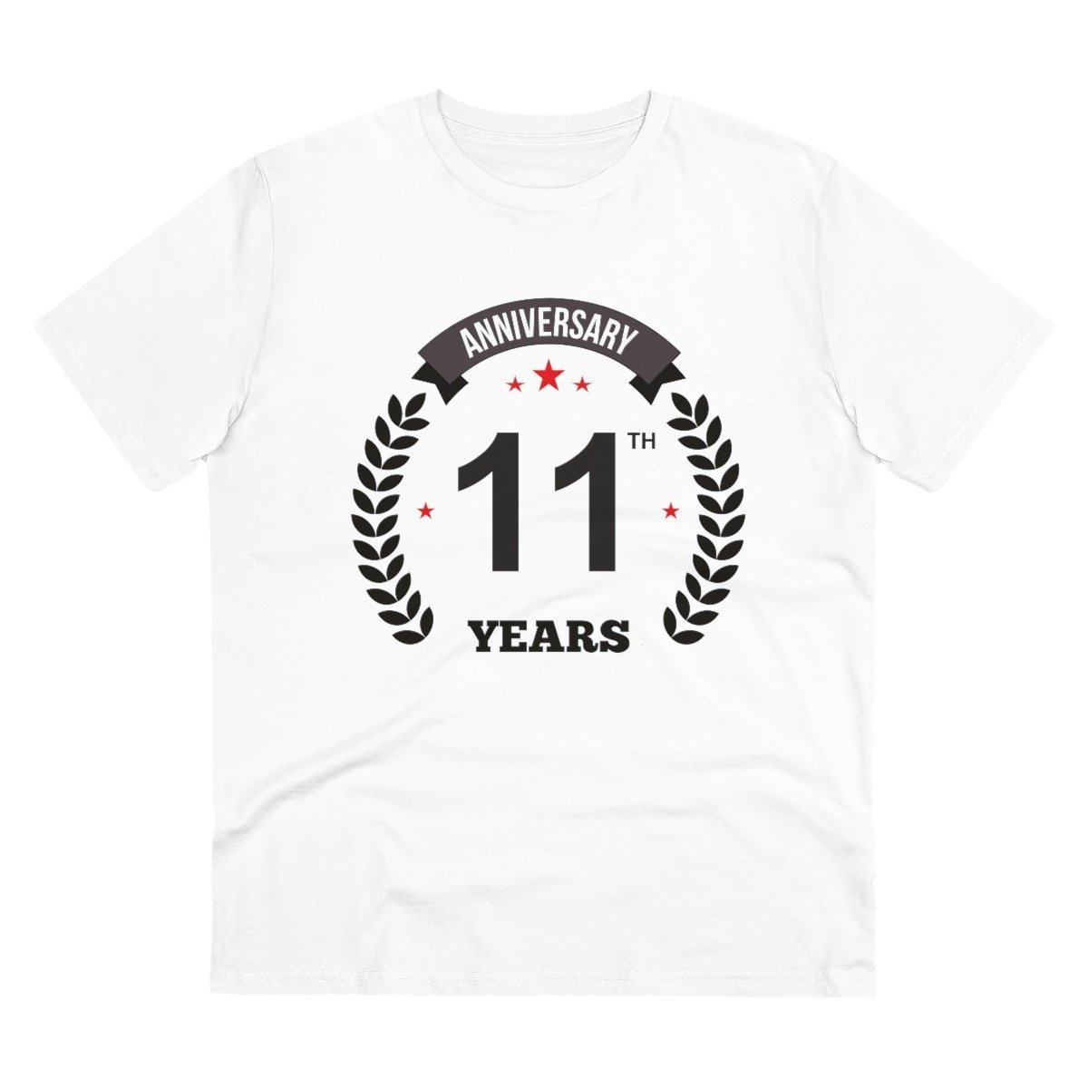 Generic Men’s PC Cotton 11th Anniversary Printed T Shirt (Color: White, Thread Count: 180GSM)