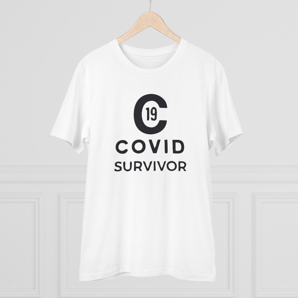 Generic Men’s PC Cotton Covid 19 Survivor Printed T Shirt (Color: White, Thread Count: 180GSM)