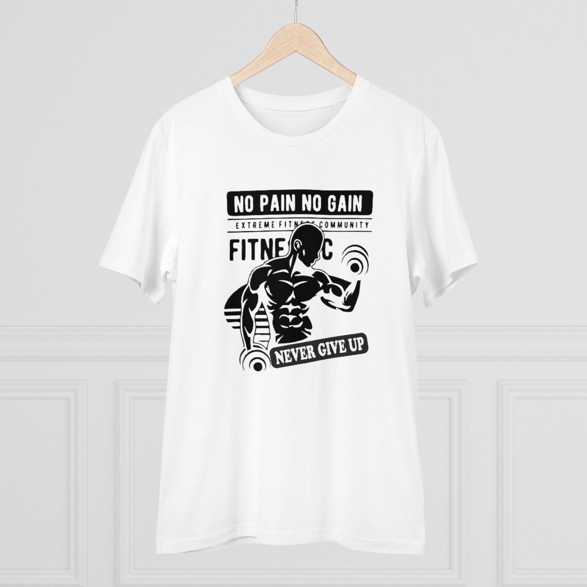 Men’s PC Cotton Gym No Pain No Gain Never Give Up Printed T Shirt (Color: White, Thread Count: 180GSM)