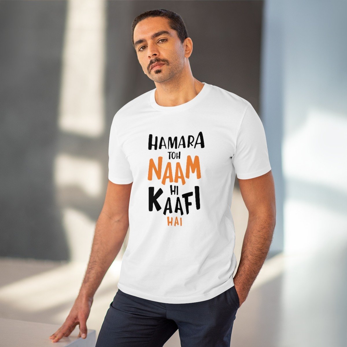 Generic Men’s PC Cotton Hamara To Name Hi Kaafi Hai Printed T Shirt (Color: White, Thread Count: 180GSM)