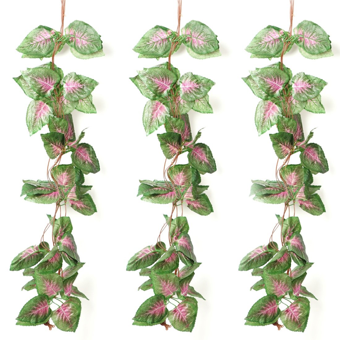 Generic Pack Of 3 Silk Polyester Artificial Shaded Pink Green Leaf Vine Hanging Garland Foliage Flowers Leaf Plants For Wall Decoration (Color: Pink-Green,Length: 15 Feet)