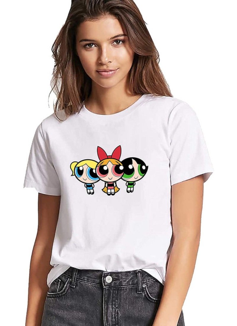 Generic Unisex Half Sleeves Power Puff Girls Tshirts (Color:White, Material:Polyester)