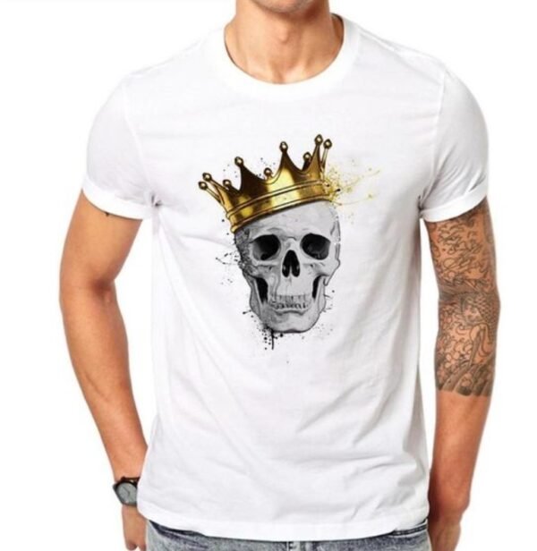 Generic Unisex Half Sleeves Skull King Tshirts (Color:White, Material:Polyester)