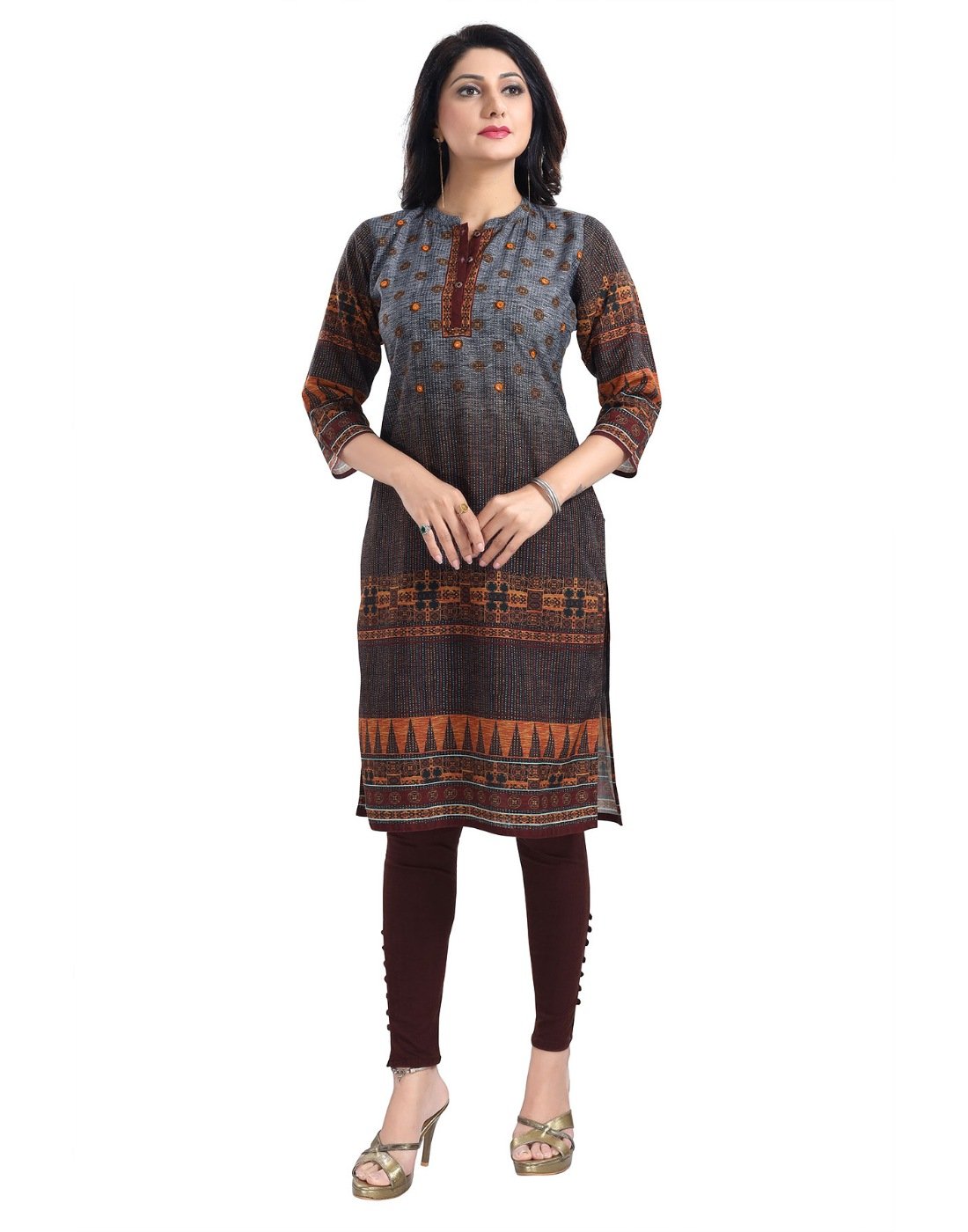 Generic Women’s 3/4th Sleeve Cotton Blend Tunic Long Kurti (Brown)