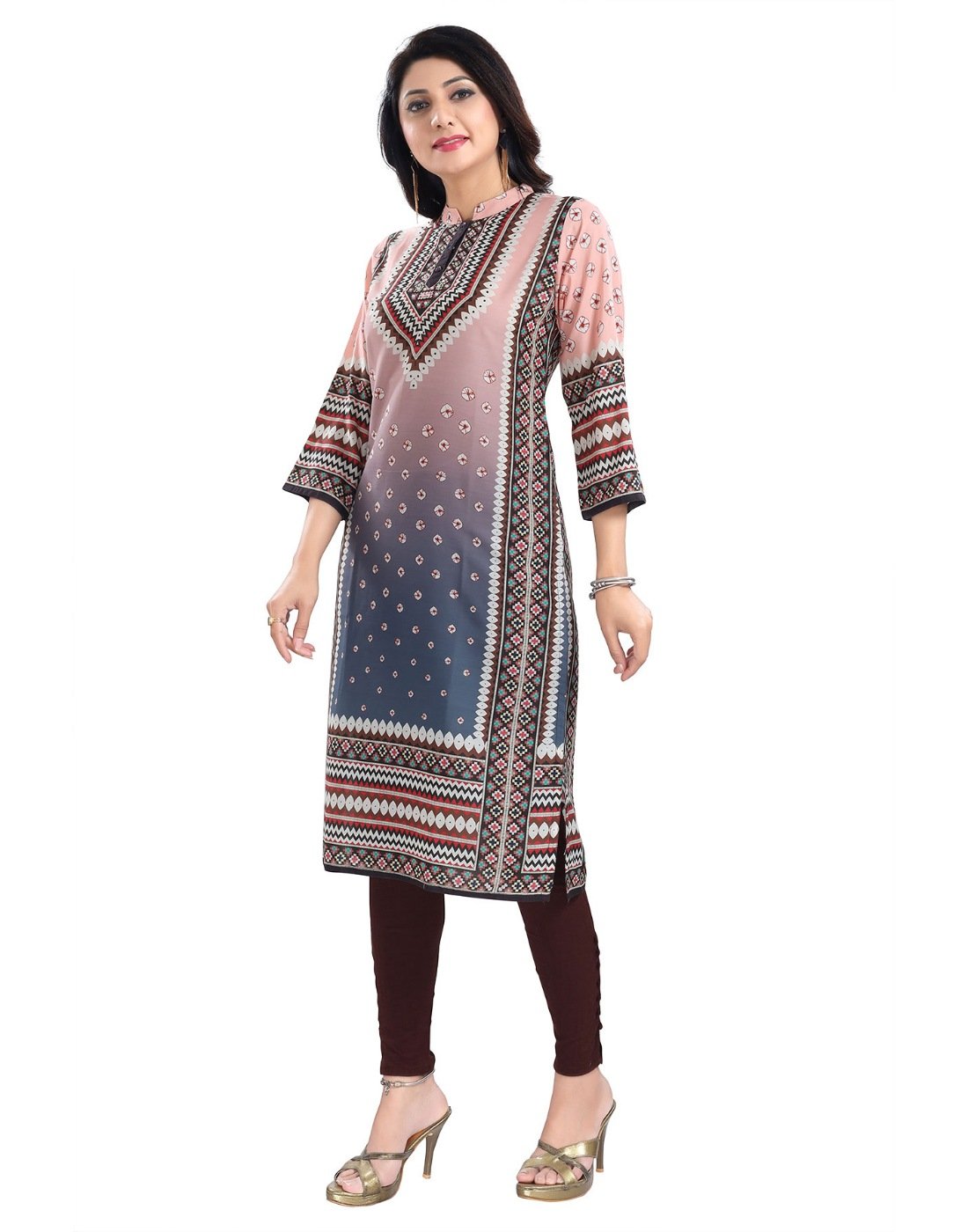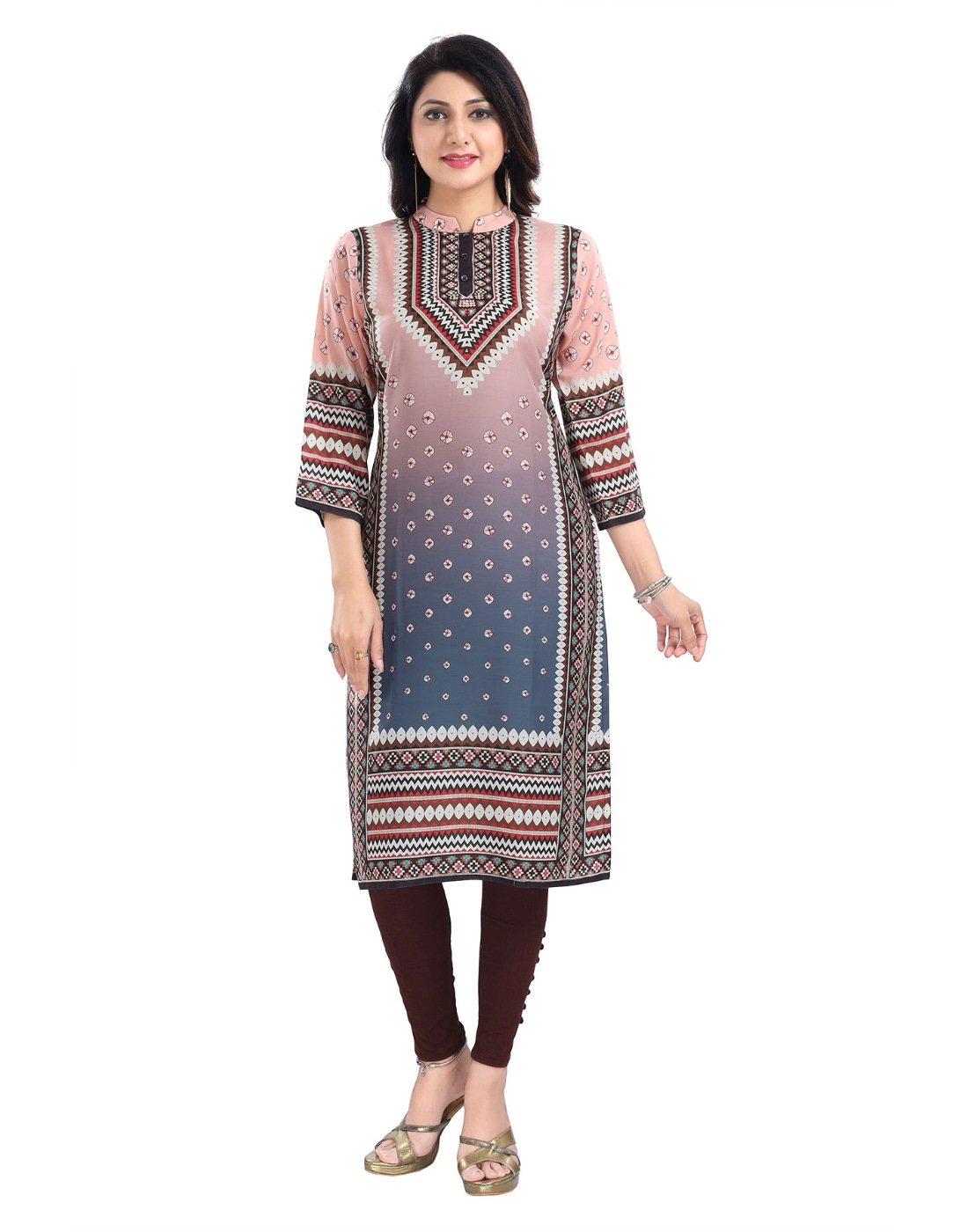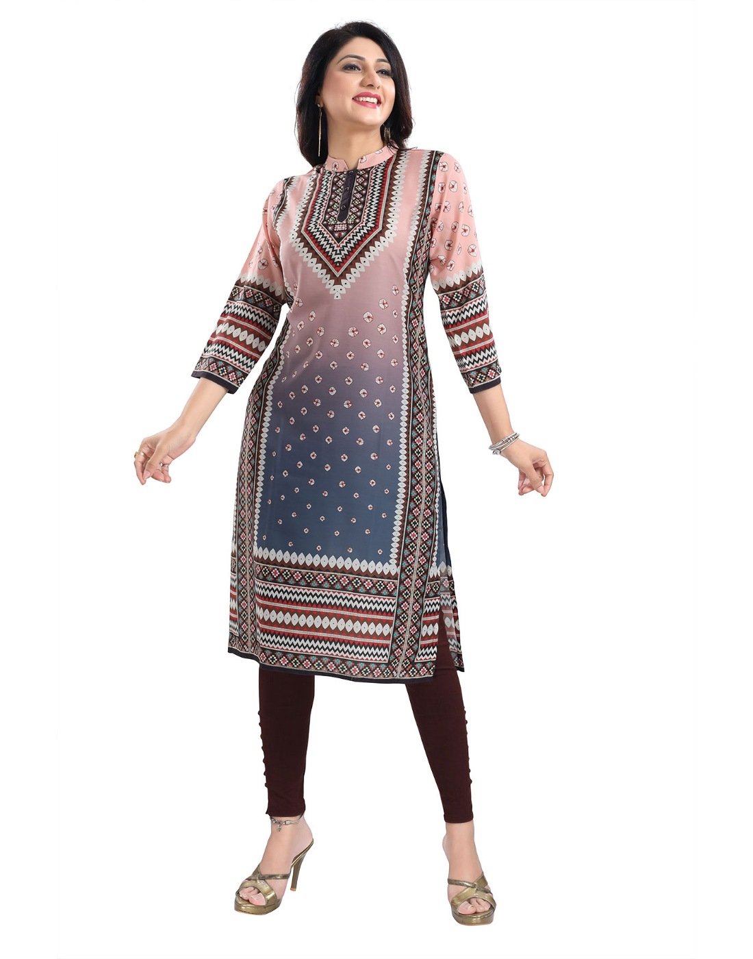 Generic Women’s 3/4th Sleeve Masleen Tunic Long Kurti (Peach)