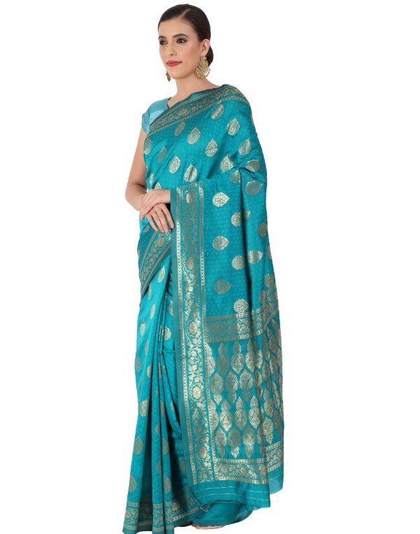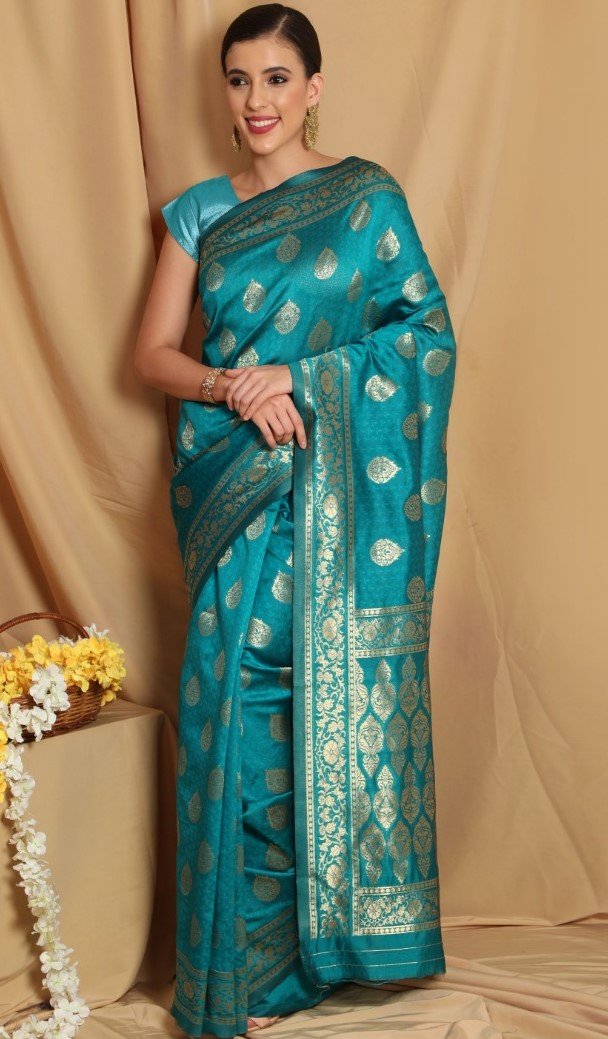 Women’s Banarasi Jacquard Sarees (Rama Green , 5-6Mtrs)