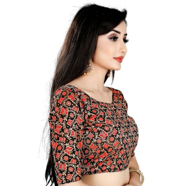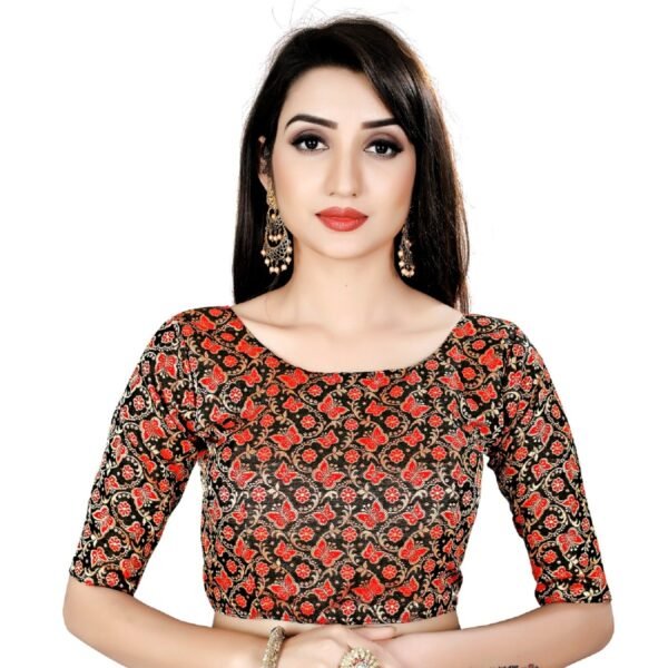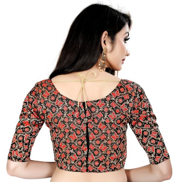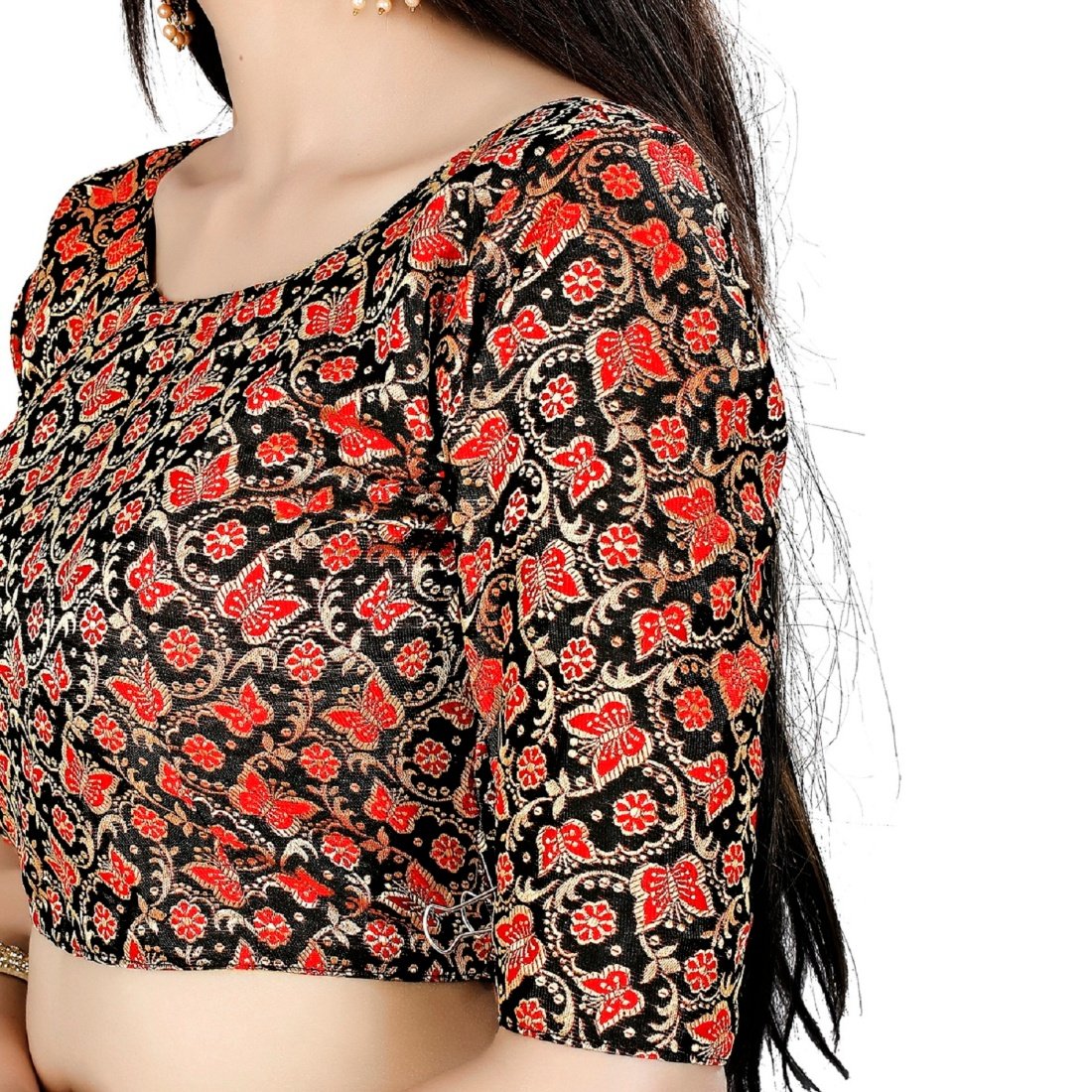 Generic Women’s Brocade, Inner-Cotton Full Stitched Padded Blouse (Black Red).