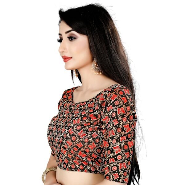Generic Women’s Brocade, Inner-Cotton Full Stitched Padded Blouse (Black Red)