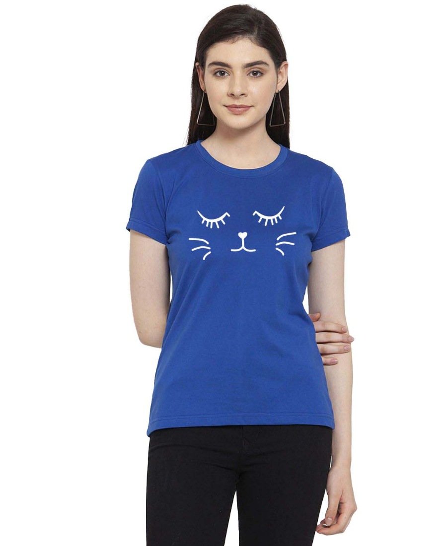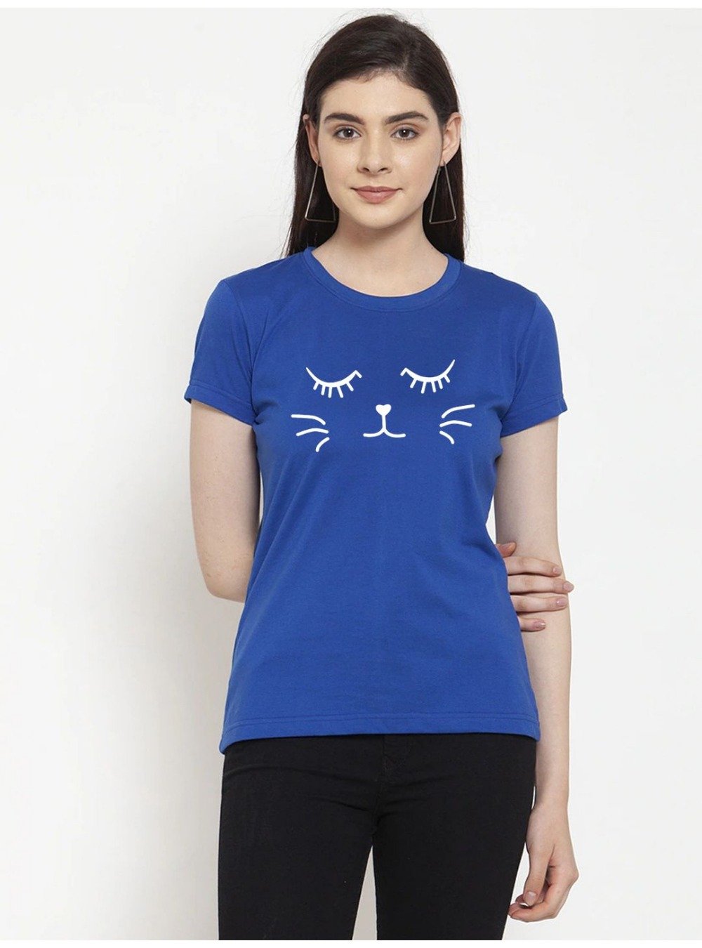 Generic Women’s Cotton Blend Graphic Cat Printed T-Shirt (Blue)