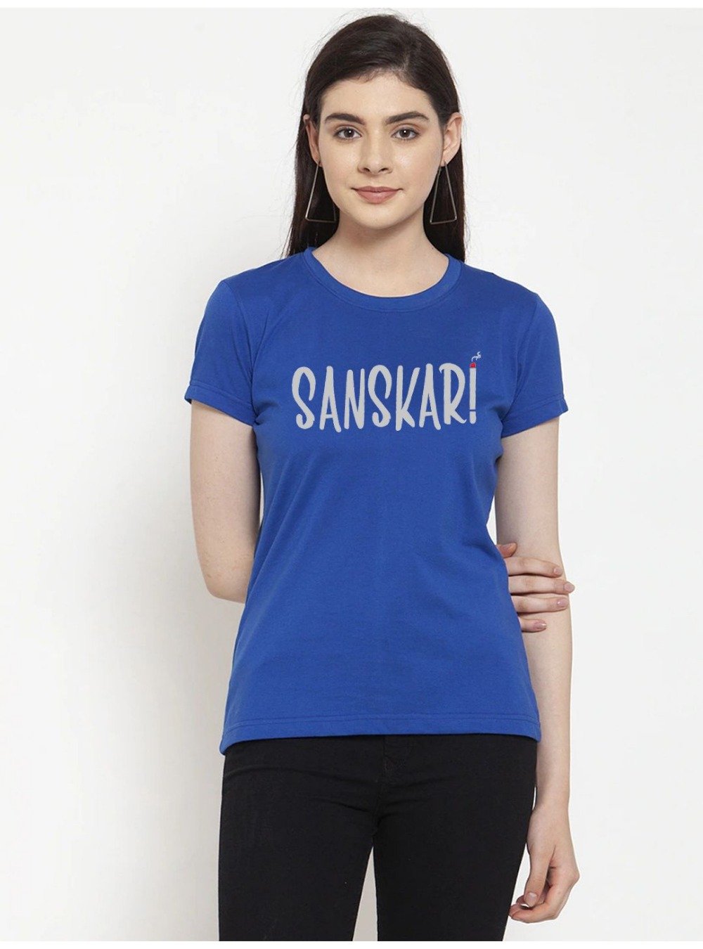 Generic Women’s Cotton Blend Sanskari Printed T-Shirt (Blue)