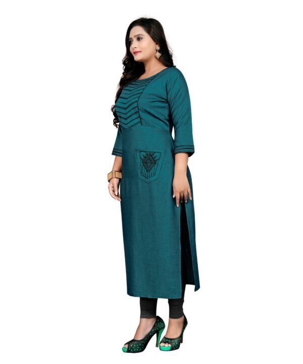 Generic Women’s Cotton Embroidery Straight Kurti (Blue)
